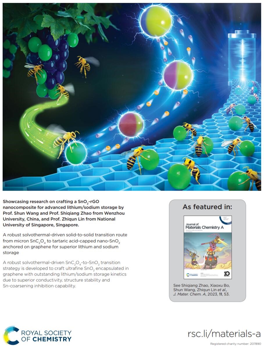 王舜教授、赵世强副教授指导的研究论文“A Robust Solvothermal-Driven Solid-to-Solid Transition Route from Micron SnC2O4 to Tartaric Acid-Capped Nano SnO2 Anchored on Graphene for Superior Lithium and Sodium Storage”选为期刊封面文章。