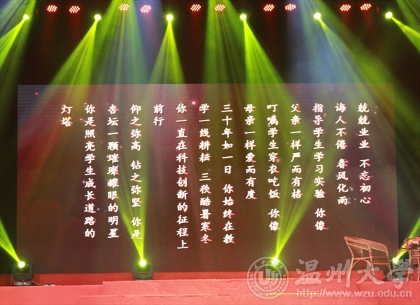 吴老师不仅科研能力强,教学水平也是极具特色。富有激情的课堂讲学,总能让学生们受益匪浅。除了教授学生知识,他还培养学生自主学习、独立解决问题的能力,他经常和学生说,要使自己成为一个具有高素质的科研工作者,而不是一个机械的、不动脑的操作工!吴老师不仅关心学生学习,对他们日常生活的照料也是无微不至。冬天喊学生多穿衣服,夏天给学生买风扇、夏令品,还常常给学生带特产。为人和蔼,豁达大度的吴老师总是被学生们赞美成“人生路上的灯塔,指引着前进的方向。”