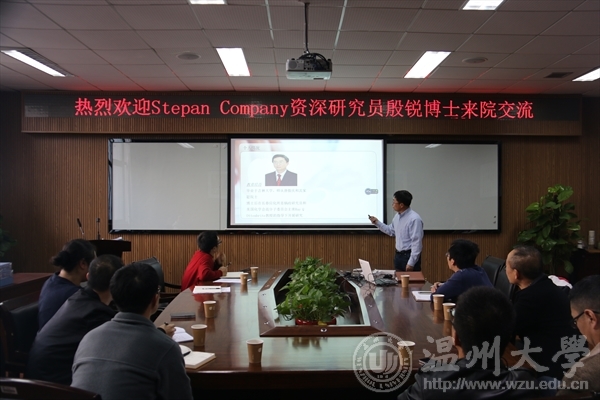 2017年1月5日下午2:30,Stepan Company资深研究员殷锐博士应邀做客瓯江学术论坛,男同性恋AV 校长李校堃、院长王舜及众师生参加论坛讲座。