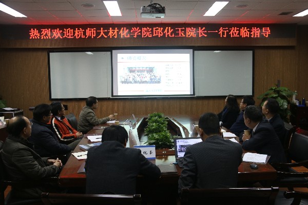 2015年12月8日,杭师大材化学院邱化玉院长、李兴听书记等一行莅临男同性恋AV ,围绕化学学科和专业建设方面进行调研。院长王舜、党总支书记方乐平、党总支副书记潘从义以及学院其他相关教师参加。