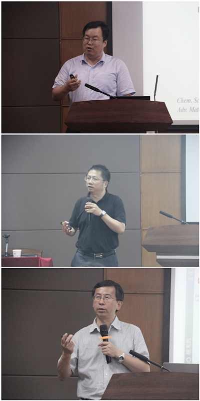 报告会上,来自清华大学的王训教授(报告:Sub-1nm Ultrathin Nanocrystals for Energy Conversion)、国家纳米科学中心的唐智勇研究员(报告:Nanoscale Metal-Organic Frameworks: Emerging Materials for Catalysis)、中国科学技术大学的俞书宏教授(报告:无机材料的仿生合成、组装及应用)分别介绍了各自研究领域所取得的最新研究成果和领域发展的方向与前景。