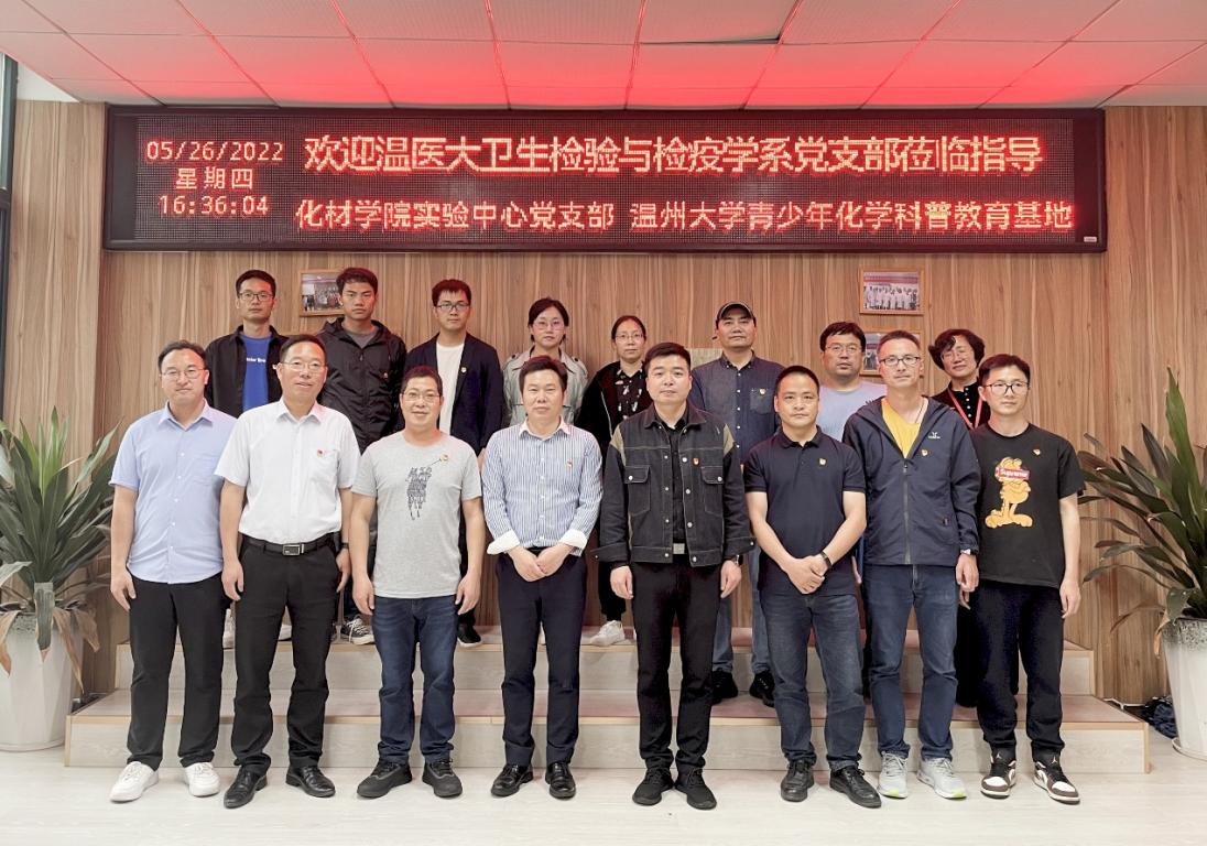 5月26日下午,温州医科大学检验医学院党委副书记陈贤新带领卫生检验与检疫系党支部一行9人到男同性恋AV 进行党建工作交流,院党委副书记周敬业、教工实验中心党支部书记刘妙昌及部分支部党员老师参加交流。