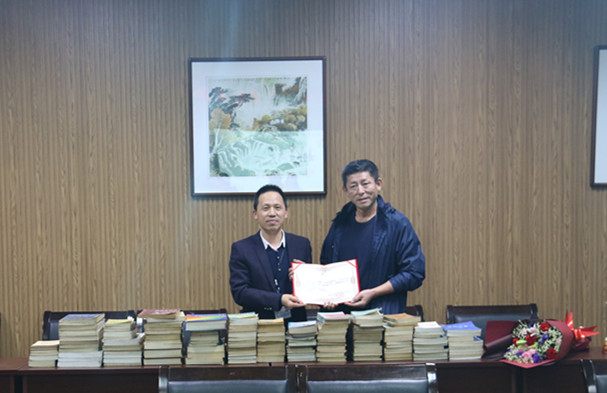 最后,举行了张东教授书籍捐赠仪式,张东教授将自己珍藏多年的《物理化学》《高分子化学》等专业书籍170余册赠送给学院,供学院师生使用。王舜院长代表学院接受捐赠,并颁发捐赠证书。