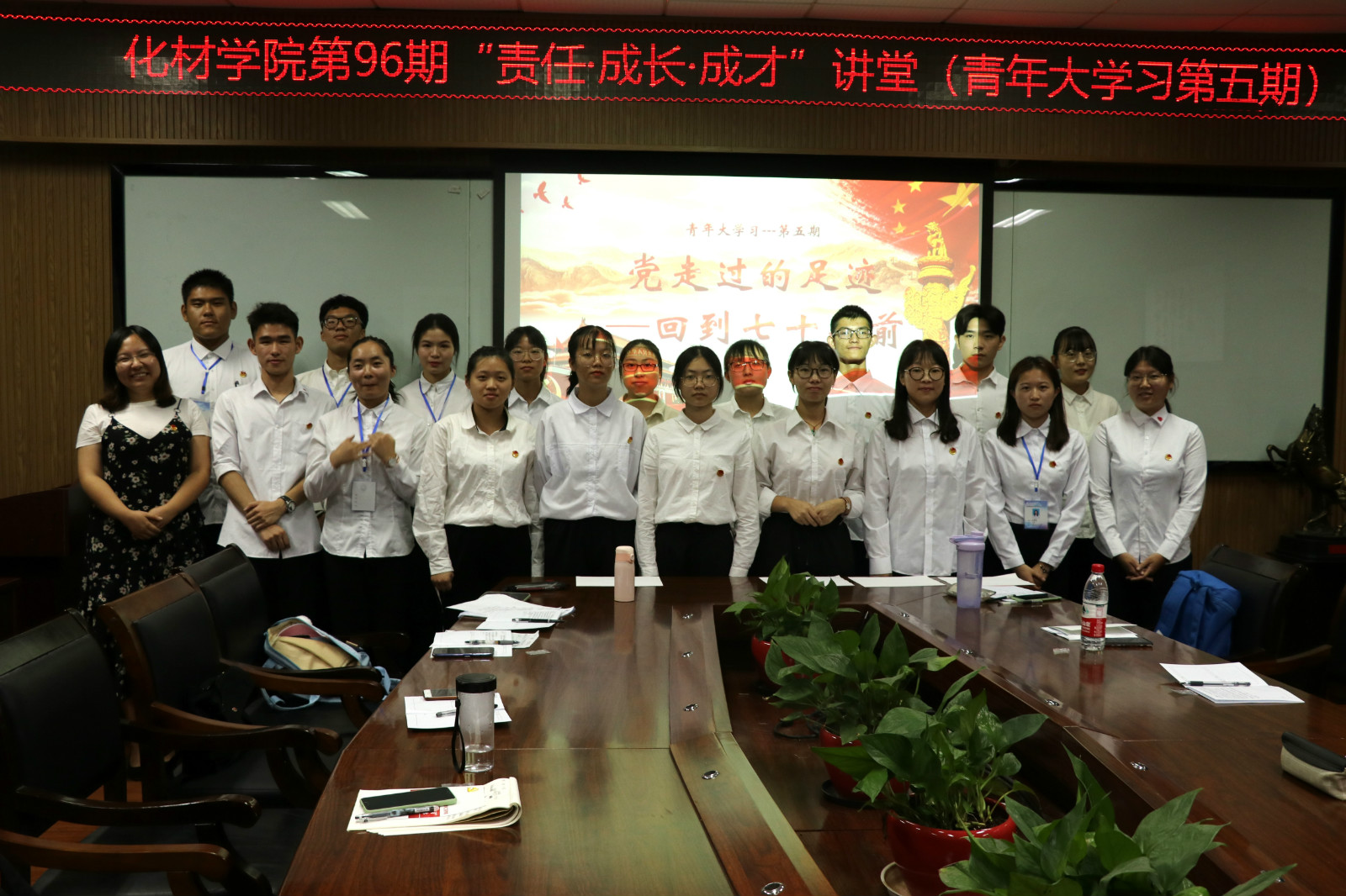开展“回顾党走过的足迹,回到七十年前”演讲活动。化材学子用他们最真挚的话语诉说对祖国的热爱,在简短的致辞里,蕴含着的是诉不尽的爱国情义。七十年的历史变迁,向我们展示了祖国的顽强崛起,拨得云开见月明,如今祖国的繁荣昌盛,让化材学子更加坚定自己的信仰,不忘初心,牢记使命。