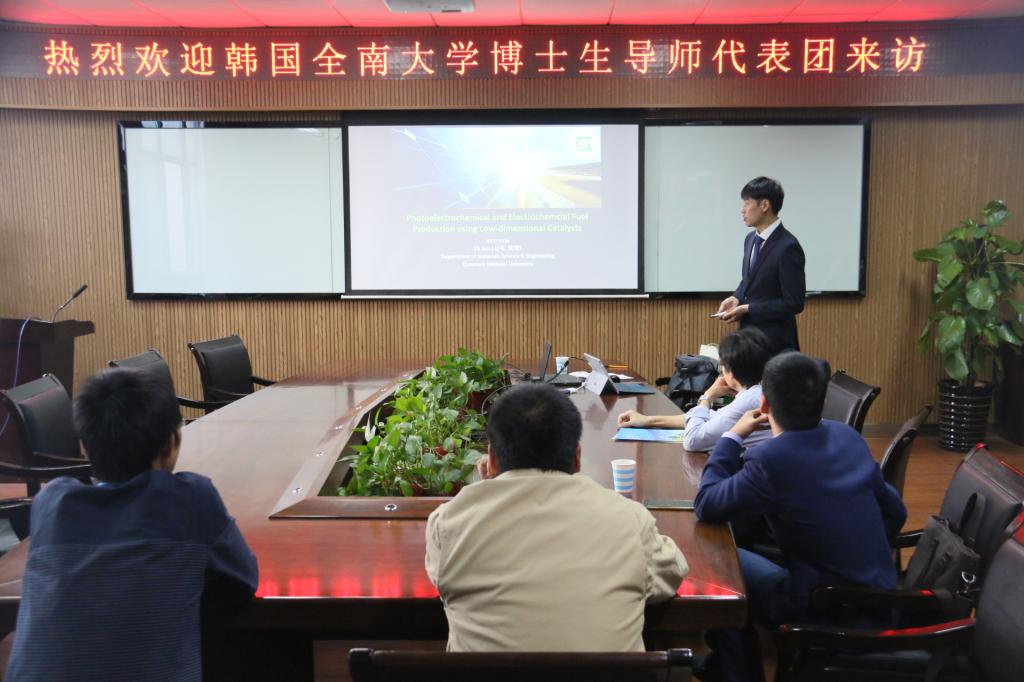 24日下午,韩国全南大学博导Sim,Uk(沈旭)教授来访化材学院,参加中韩博导与教师交流会。会上,副院长杨小平代表全院对Sim,Uk教授的到来表示热烈欢迎,并全方面地对学院专业建设及学院发展情况作了详细介绍。随后,由人事处副处长蒋俊,副院长张兴国,院长助理夏远志向Sim,Uk教授介绍了自己的科研团队与成果,双方商谈合作契机。最后,双方就材料工程专业开展了深入的探讨,Sim,Uk教授也对他们目前所在研究材料的成果进行了全面的展示,并对男同性恋AV