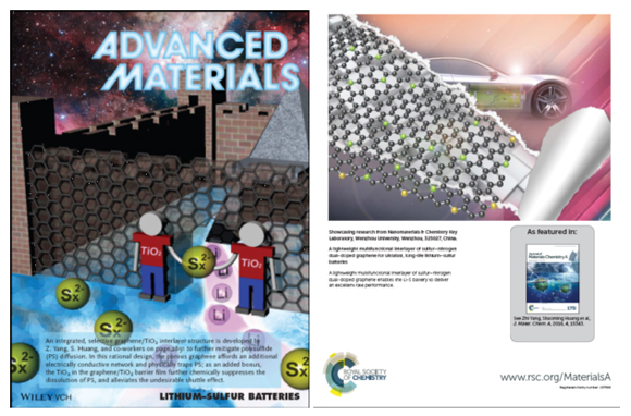 上述工作,是该研究组近年来在碳基能源催化材料研究领域研发的进一步拓展。近年来,该课题组针对当前锂硫电池、燃料电池、电催化等领域的关键科学和技术难题,以纳米结构碳材料为研究对象展开系统研究,取得了系列创新性成果:1)设计并发展了多种多功能(离子选择性吸附、高导热、隔膜保护、聚硫离子剪切等)石墨烯复合插层膜,大幅度提高了锂硫电池的倍率和循环稳定性(Advanced Materials 2015,27,2891,IF=18.9; ACS Nano 2017, 11, 2209,IF=13.3;Journal of Materials Chemistry A 2014,2,8683;Journal of Material s Chemistry A 2016,4,15143);2)提出“雾化乙醇辅助渗透热解法”,实现了多种过渡金属氧化物在高密度碳管阵列上均匀、深度涂覆,在氧还原催化中展现了好的潜在应用前景(Advanced Materials 2014, 26, 3156,IF=18.9; 3)设计开发了多种非贵金属高效氧还原、氢析出碳基催化剂(ACS Nano 2012, 6, 205,IF=13.3;Chem. Commum. 2012, 48, 1027;Nanoscale 2014, 6, 2603;Nanoscale 2013, 5, 3283;Nanoscale 2012, 4, 6455;ACS Appli. Mater. Inter.2011, 3, 2601;ACS Appli. Mater. Inter. 2016, 8, 3543;ACS Applied Materials & Interfaces, 2016, 8, 17284.;Journal of Power Sources 2011, 196, 9970;Journal of Power Sources 2013, 236, 238等),相关研究也多次登上了Advanced Materials、JMCA、Nanoscale等杂志的封面,其中发表在ACS Nano (2012, 6, 205,影响因子13.3)上的有关硫掺杂石墨烯的研究工作,目前已被引用582次,入选ESI热点和高引论文,基于在该领域的贡献,2013年受国际著名电化学能源杂志(Journal of Power Sources)编辑团队邀请,撰写综述(Journal of Power Sources 2013, 236, 238),该论文也入选ESI热点和高引论文。