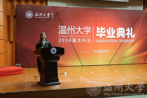 毕业生代表李慧静发表讲话,四年匆匆,对老师、家长及温大的感情不仅是留恋,更多的则是感恩。