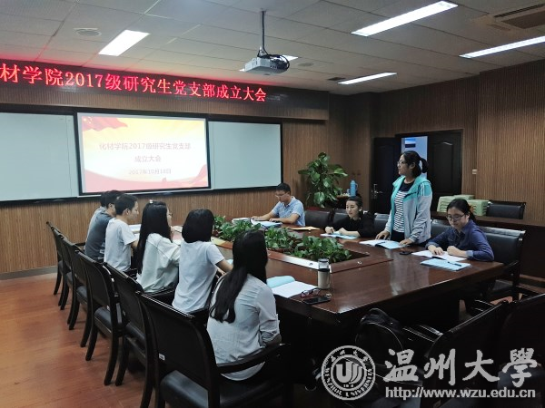 2017级研究生党支部成立大会在化材楼11B204会议室召开。研究生党支部指导老师邹涌彬以及党支部全体党员参加了大会。会议由邹涌彬老师主持。