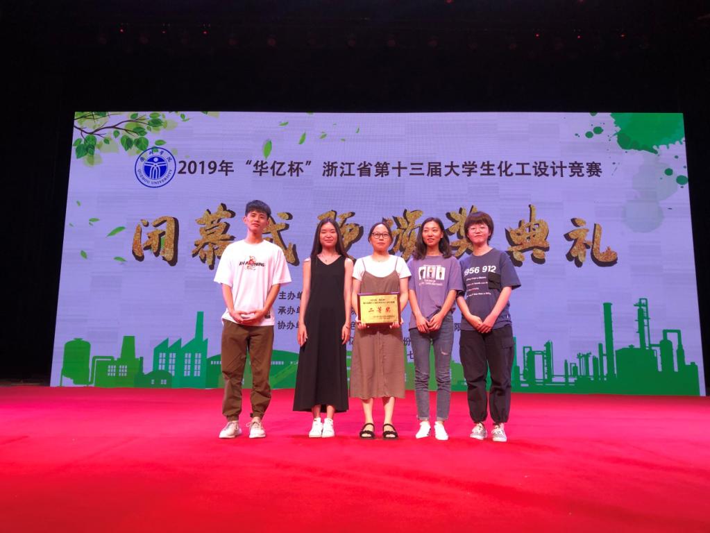 16化工张佳蕾、张武、朱露萍、丰嘉颖和陈雅婷同学组成的“烯望之夏”参赛队,在张青程、徐进、潘明初和胡建波老师的指导下,经过激烈的角逐,在决赛中取得二等奖的佳绩。