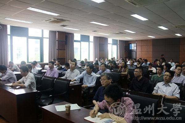 潘玉驹从为什么党和国家如此重视意识形态工作和如何开展这项工作这两个问题入手,用大量素材和实例向与会教师深入浅出地做了详细的讲解。他分别从国内形势、国际形势和高校意识形态现状三个方面,深刻分析了当前意识形态上存在的问题,阐释了牢牢把握意识形态主动权和话语权的重要性和必要性。在谈到如何去开展意识形态工作时,潘玉驹认为,一是要加强理想信念教育,重视师生的理论武装;二是要认清西方民主的普世价值观,以清醒的头脑正确看待世界舆论的评价;三是要正确对待中国目前存在的各种矛盾和问题,加强课堂、讲座、论坛等阵地管理,大力推动精神文化建设,努力弘扬正能量。潘玉驹最后强调,意识形态工作是学校的重要工作,必须加以重视并落实于行动之上。