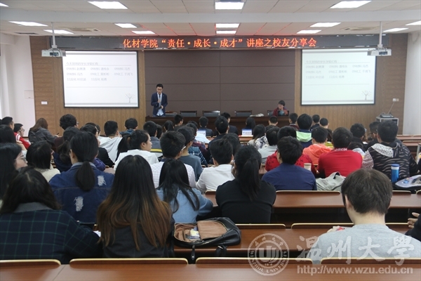 上午10点,校友们分成两批在208会议室和401会议室举行“责任 • 成长 • 成才”讲座,分享会工作经历,来自教育系统、化工企业、科研机构、自主创业的十多位校友就升学考研、应聘求职、创业就业等方面提出了宝贵的意见。09级材料班的校友潘传永分享了自己关于考研和读研的亲身经历。关于就业选择,各位校友不约而同给出一条意见,兴趣是首要。他们以自身经验为案列,娓娓道来道来,09级化工班的校友于鸿飞强调,不能盲目随大流,应以兴趣点为自身的定位。11级应化班的杨勇和09级材料的赵萧潇建议大学生在校期间就应该积极参与社会时间,积累经验并尝试确立自己就业方向。两个小时的热烈讨论,让同学们受益匪浅。