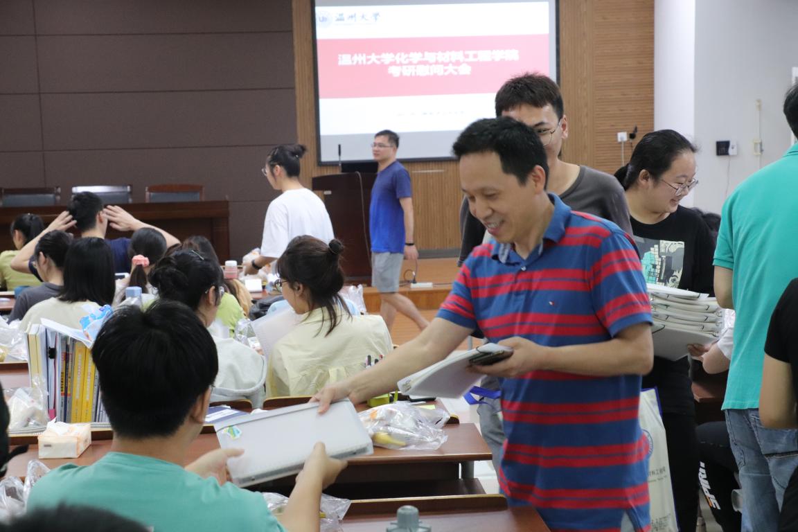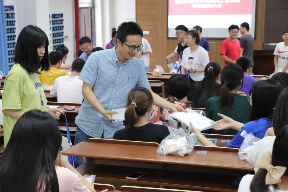 之后,在学工办辅导员老师的组织下,将学院精心制作的爱心礼包分发给同学们,一本本“薪火相传”计划的笔记,一份份暖心加油包小食,一句句叮咛嘱咐的话语,无不体现着学院对考研学子细致的关怀与殷切的期盼。学院一直高度重视学生考研工作,在思想、学习和生活等方面为考研学生提供指导和帮助,并通过广大考研学生的示范效应在学生中积极营造浓郁的学习氛围,有力促进了学院优良学风的形成和发展。