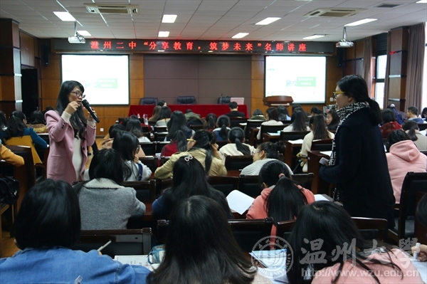 ,在学院报告厅为14和15级化本的师范生们做了题为“分享教育,筑梦未来”的分享讲座。