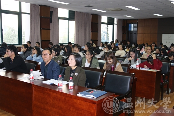 最后,温州市师德楷模、温二中教研处主任卢成树老师为大家分享了“一组一特色”课堂教学改革的探索过程。卢老师通过语言、文字、图片渐渐把在座的同学们带向教学一线,去思考如何促进有效的学习课堂,让同学们从中明白时刻都要向书本、向同学、向同事、向学生学习,多自我反思,通过研究每节课、准备每节课、反思每节课来提升自我水平,为改革创新增新添力。