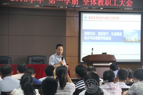 院长王舜作题为《凝聚共识、真抓实干、扎实推进高水平应用型学院建设》的工作报告,院长简要回顾了上学期的各项工作成绩,对全体教工所付出的努力表示感谢。王院长强调将学院建设为一流应用型高校,重点从四方面进行开展,一是博士点建设工程,要加强与知名院校联合博士后科研工作站的扩大;二是要多维互动的校地合作,促进产教、产城融合;三是继续加强国际化与创新人才培养;四是要“三借三靠”,助推学院发展。