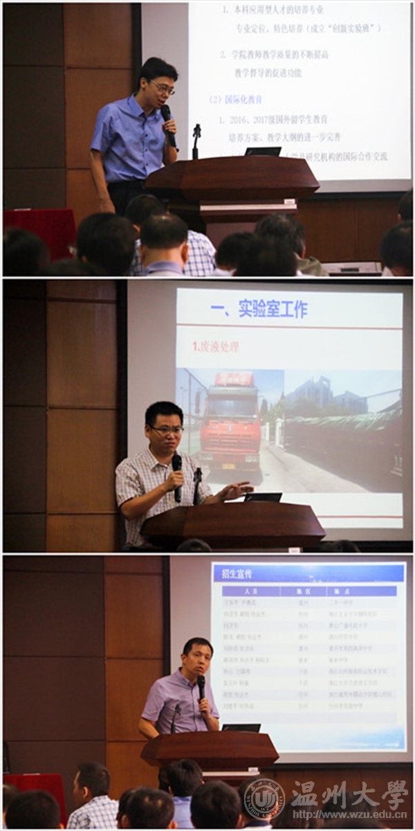 副院长张兴国就暑期承办浙江省第九届浙江省化学竞赛和实验室安全工作进行了回顾,就新学期实验中心建设和科研工作进行布置,他表示新学期将继续改造完善实验室设备,加强日常管理及维护,保障师生安全。