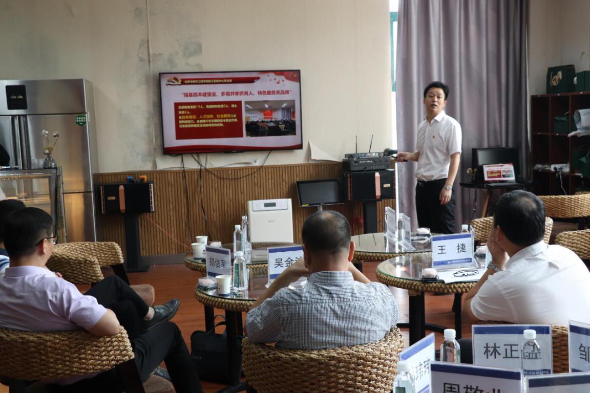 党委书记熊琳做了题为“ 推进支部标准化建设 擦亮学院党建工作品牌“专题工作汇报,从“五个对标”推进党支部标准化化建设,“四个体系”构建“党建+”育人格局,落实立德树人根本任务,“一核多点”创新服务社会载体,增强支部党建品牌影响力,“红色阵地”一体化建设,支部活动空间焕然一新对学院党建工作进行了介绍。