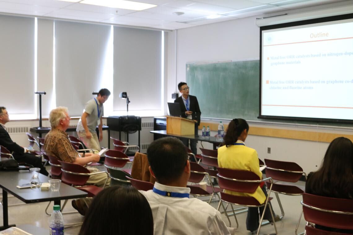 王舜教授带领5位青年教师应邀参加了在加拿大哥伦比亚大学举行的第二届国际电化学能源科学与技术会议,并做了题为“Novel-structured Nanomaterials for Fuel Cell”的邀请报告。会议期间,学院邹超博士、杨克勤博士、林大杰博士、陈锡安博士以及金辉乐高级实验师也分别就自身在太阳能电池、燃料电池、锂硫电池等领域所取得最新研究结果在分会场上做专题报告。此次会议交流,不仅提升了男同性恋AV