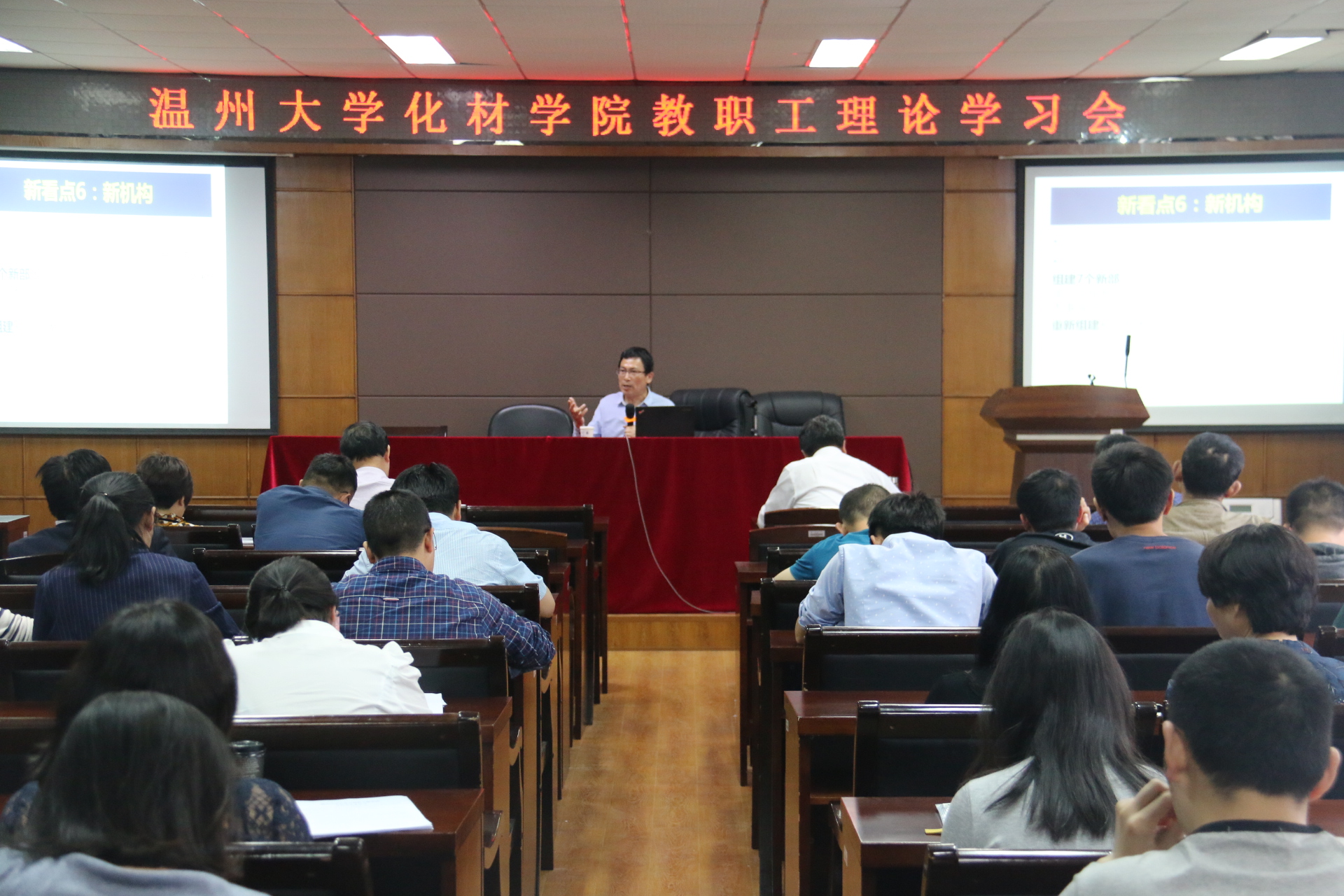 全体教职工参加学习会。