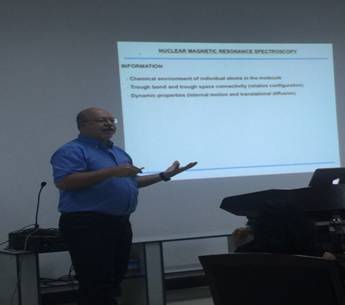 Roberto Gil教授长期从事有机小分子结构鉴定研究工作,侧重于核磁共振波谱技术,在核磁共振实验新方法开发方面具有丰富的经验。此次他形象生动地阐述了核磁共振各向异性参数的基本原理,深入浅出地讲授了三种各向异性参数(四极裂分,化学位移各向异性,残留偶极耦合)的特性及其在小分子立体鉴定中的重要价值。并现场演示了他本人开发的PMMA凝胶定向介质及调控器具,让同学们体验了各向异性测试的一些策略。同时他还就该技术在天然产物结构多手性中心的分析及有机合成未知反应产物阐释为例详细讲解了不同于常规核磁共振方法的应用。
