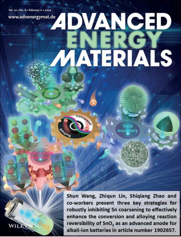 近日,国际能源顶级刊物《Advanced Energy Materials》将有关二氧化锡作为碱金属离子电池负极的综述论文“SnO2 as Advanced Anode of Alkali-Ion Batteries: Inhibiting Sn Coarsening by Crafting Robust Physical Barriers, Void Boundaries, and Heterophase Interfaces for Superior Electrochemical Reaction Reversibility”选为期刊封面文章。该文章第一作者为赵世强博士,男同性恋AV