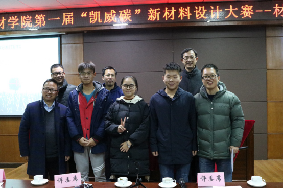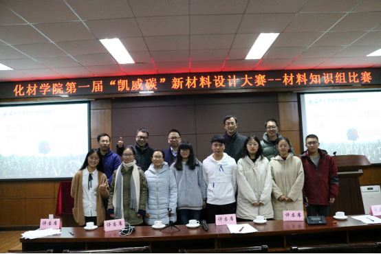 第一届“凯威碳”新材料设计大赛材料知识组比赛在化材楼11B208会议室举办。材料系主任杨植老师,材料系副主任杨昕宇老师和尹德武老师,以及材料系樊宏斌老师、刘若望老师,作为评委出席本次比赛。材料系主任杨植老师为比赛致辞。