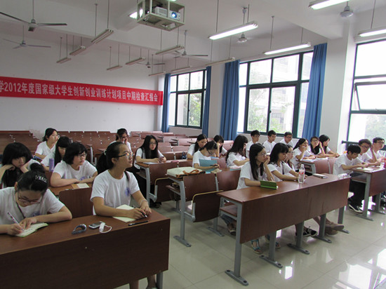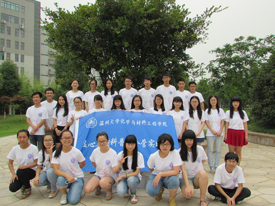 “温心”暑期科普夏令营实践队全体成员在化材楼进行着紧张的教学前准备。