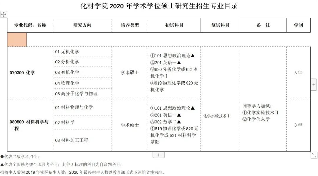 该硕士点于2011年获批为一级学科硕士学位点,设有无机化学、分析化学、有机化学、物理化学、高分子化学与物理等五个二级学科硕士点,重点开展纳米材料化学、有机及分子药物化学、能源化学、生物与环境分析化学、应用高分子化学等五个方向的研究。主要培养具有坚实而系统的化学理论基础和实验技能,从事化学及相关领域的基础研究和科技开发的高层次专业创新人才。该专业承担了多项国家和省部级科研课题,具备良好的科研条件。
