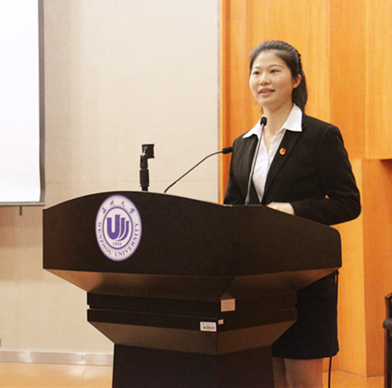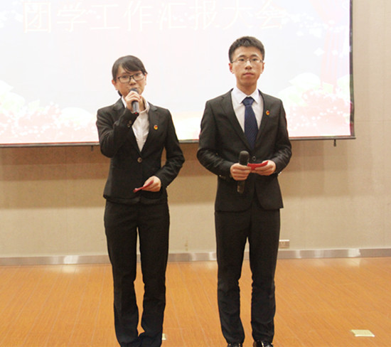 在庄严的团歌声中,大会正式拉开了序幕。团委副书记王慧敏率先致辞,她对过去一学年的工作情况进行回顾与总结,并通过一个短小精彩的视频对各个中心工作进行简要介绍。