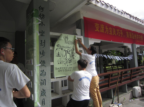 “绿袖子”实践队携手温州市城市管理与执法局环境卫生管理处进社区,讲环保,共创卫。