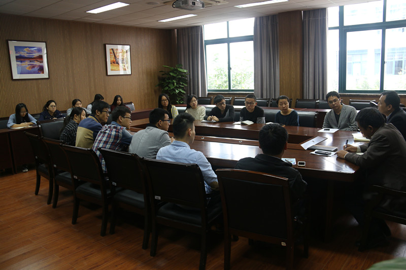座谈会上,同学们与在场老师关于目前就业形势及未来就业进行了交流,提出了自己的想法。潘从义副书记及在座老师对同学们提出的实习、就业信息渠道、面试等方面的问题进行了详细的解答。
