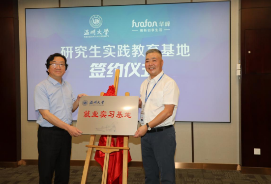党委书记刘吟和华峰集团总监王利代表双方上台签约。蔡曙光副校长和华峰集团潘基础副总裁进行了授牌仪式。