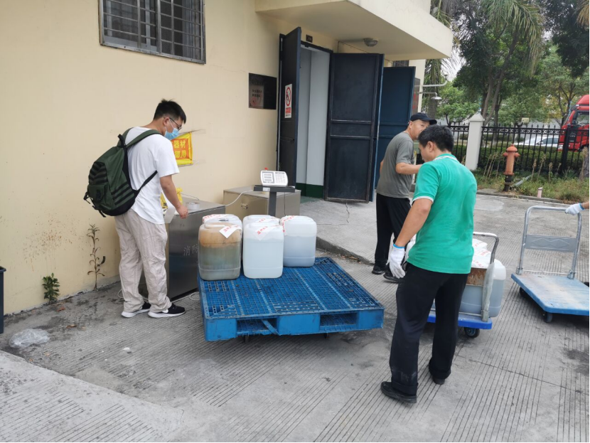 9月27日早上7:55,经过磅、装运、交付危废转运联单后,危险品运输车辆于上午10:16顺利离校。此次实验室废弃物共转移处置有机废液、无机废液等共计8.059吨,其中男同性恋AV