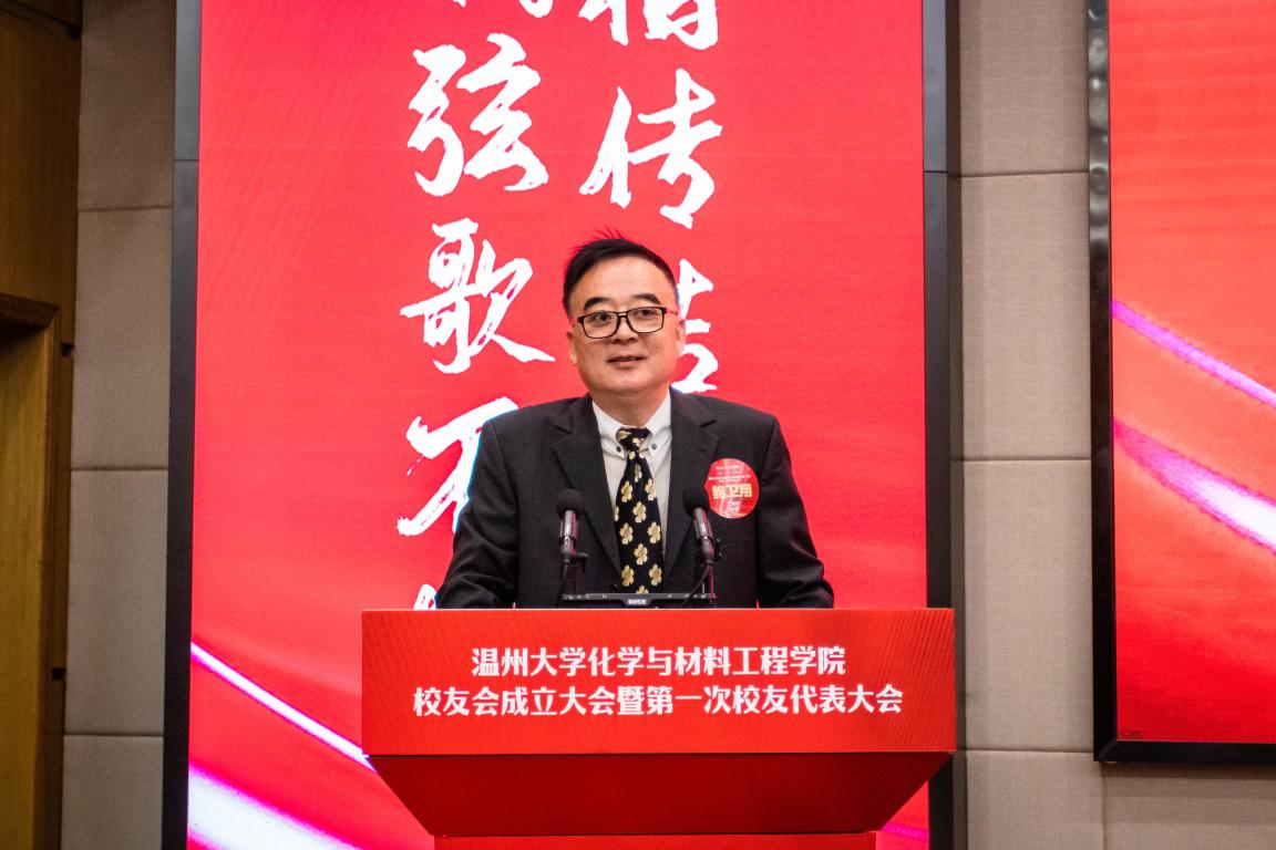 新任会长鲍卫翔讲话,他就未来如何开展好校友工作作汇报,鼓励广大校友要积极为母校的发展奉献智慧与力量。