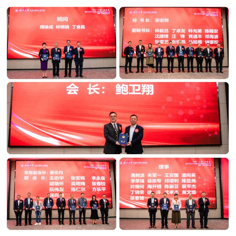 校友会第一届理事会成员建议名单。谢树华为校友理事会顾问和成员颁发聘任证书。