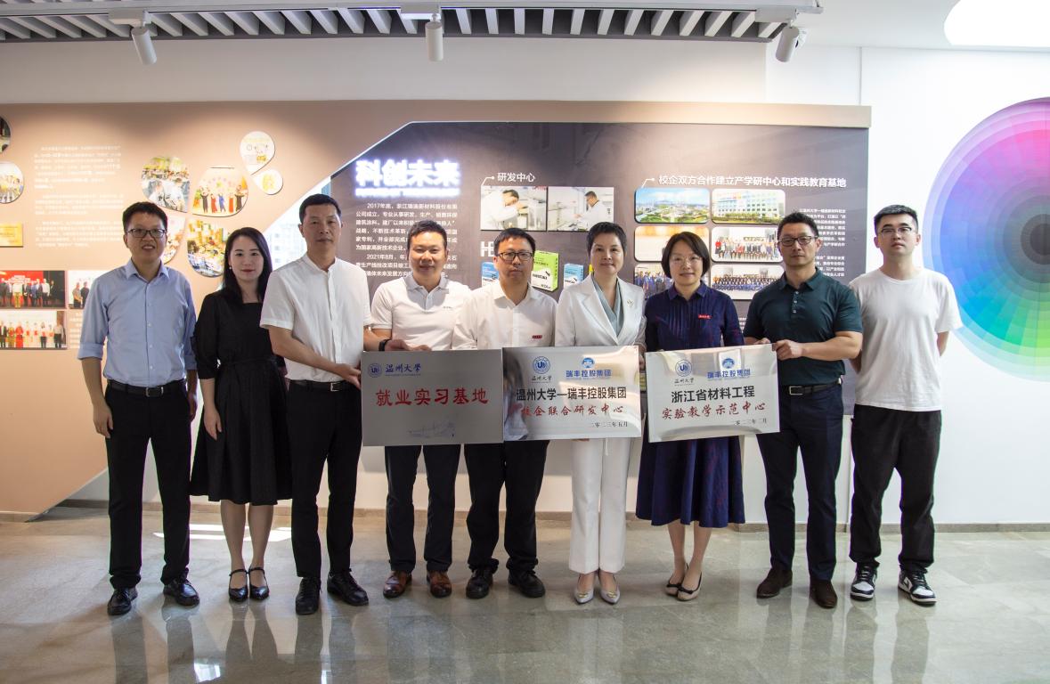 院长杨植、院党委书记刘吟、院党委副书记周敬业等人赴瑞丰控股集团走访交流,就双方持续推进校企合作展开深入的探讨。温州瑞丰控股集团有限公司董事长周赛珍出席会议。