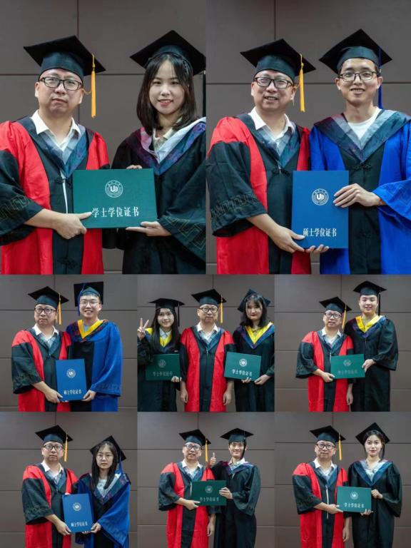 学位授予仪式开始,学院院长杨植为毕业生授予学位证书、拨穗,并合影留念。