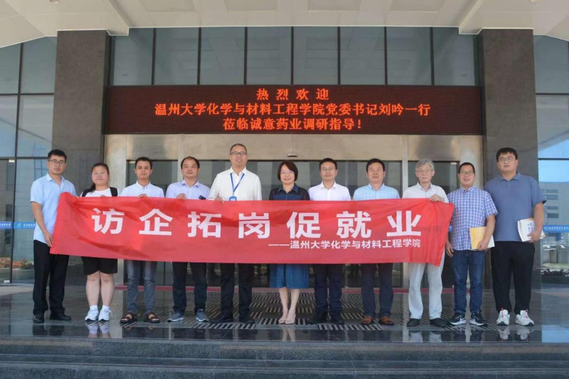 为深入贯彻落实教育部“访企拓岗促就业”专项行动,深化校企合作,6月28日,学院党委书记刘吟、副院长金辉乐、党委副书记周敬业及相关教师等一行11人前往浙江诚意药业股份有限公司调研交流。