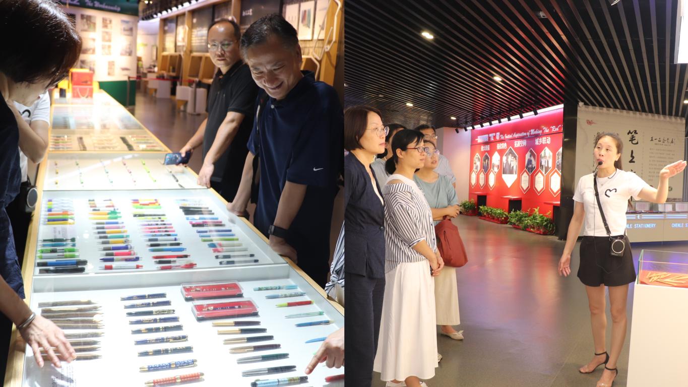 调研座谈结束后,刘吟一行慰问在制笔实验室就职的优秀校友们,并带领教师共同学习参观了分水妙笔小镇,深刻学习体会习近平总书记为分水制笔产业高质量发展擘画的宏伟蓝图与“做大做强、强化特色、拓展空间、城乡联动”的16字良方。参观教师纷纷表示对校企地深度合作,推动乡村振兴工作新发展有了新视野、新动力,今后将发挥自身化学、材料专业优势,让成果既上“书架”,更上“货架”,努力为地方乡村振兴贡献智慧力量。