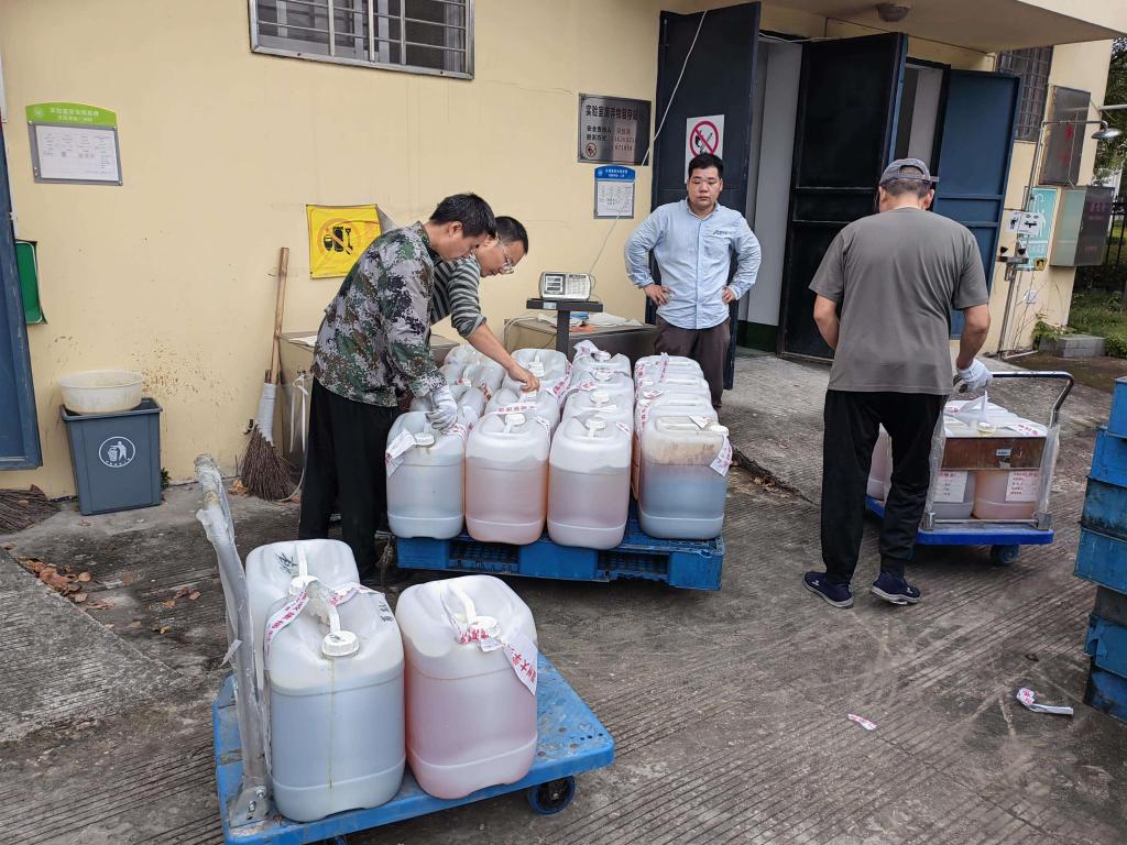 2023年10月13日早上8:00,处置公司人员进行废液测试,以有效保障废液转运过程的安全。经过磅、装运、交付危废转运联单后,于中午10:20顺利离校。此次实验室废弃物共转移处置有机废液、无机废液等共计7.72吨,其中男同性恋AV