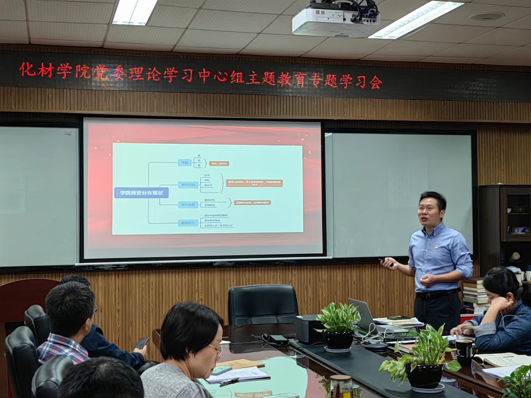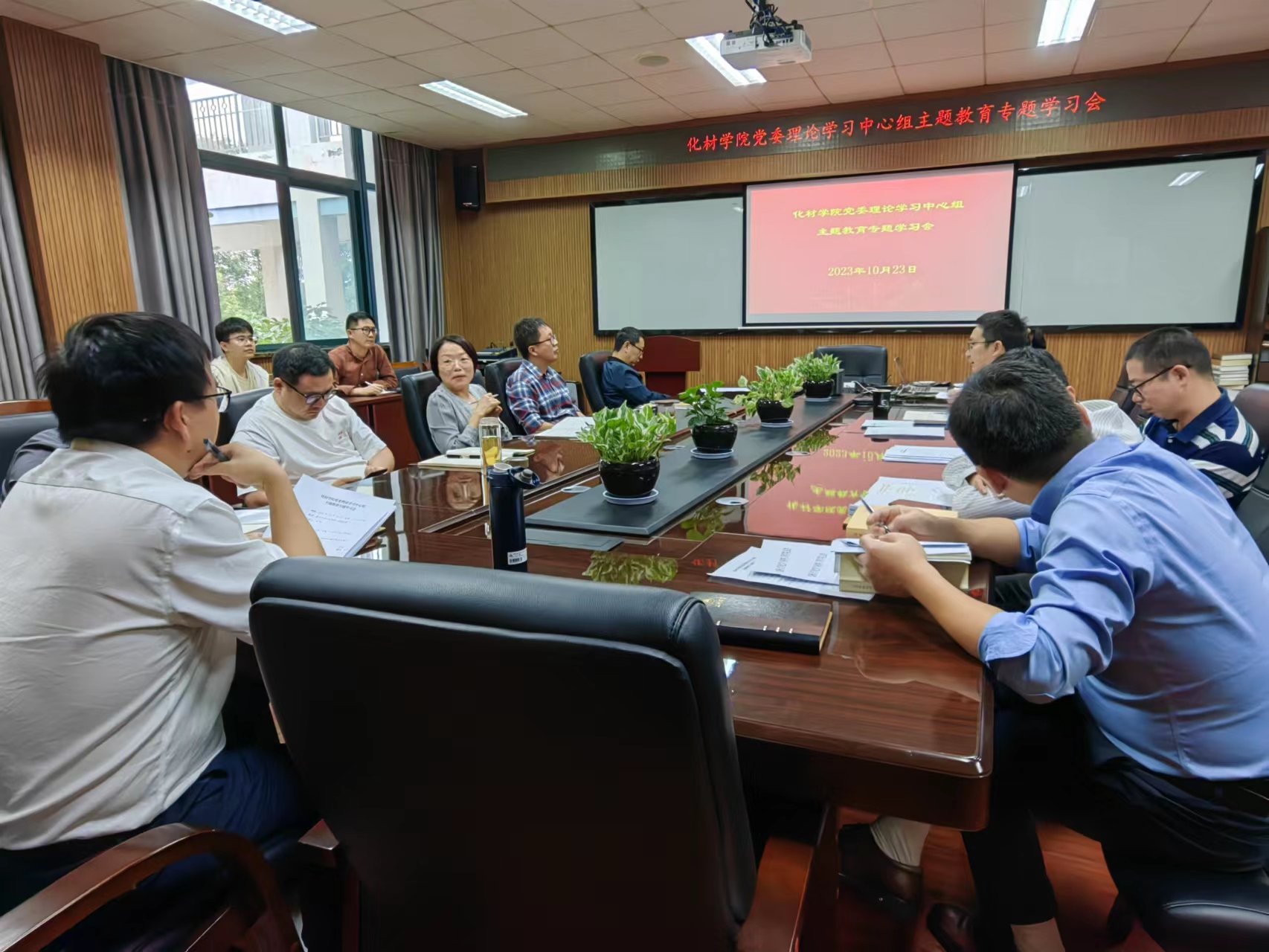 党委召开理论学习中心组主题教育专题学习会,学院党委班子全体成员、各系(研究院、中心)负责人、各科室负责同志及全体辅导员参加,会议由学院党委书记刘吟主持。