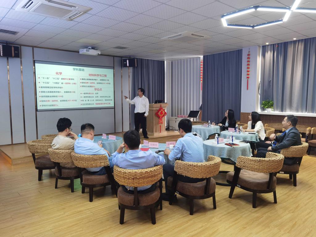 与湖州师范学院医学院、护理学院开展材料博士点建设调研活动。湖州师范学院医学院、护理学院院长姚韵靓,副院长姚金兰,党委副书记许莹莹,教学办主任董恬恬出席;学院院长杨植,副院长金辉乐,党委副书记周敬业及部分教师代表参加。