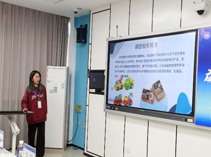 与往届不同的是,本次大赛为答辩形式。各小组根据本组创新课题,设计制作5分钟的PPT并上台展示。以专家老师提问,全组同学进行现场答辩的形式进行。在问答环节,专家老师依据参赛选手的内容细节发问,考察选手的准备是否充分,课题是否具有创新性、可操作性。比赛现场学术交流气氛热烈,全场掌声不断。