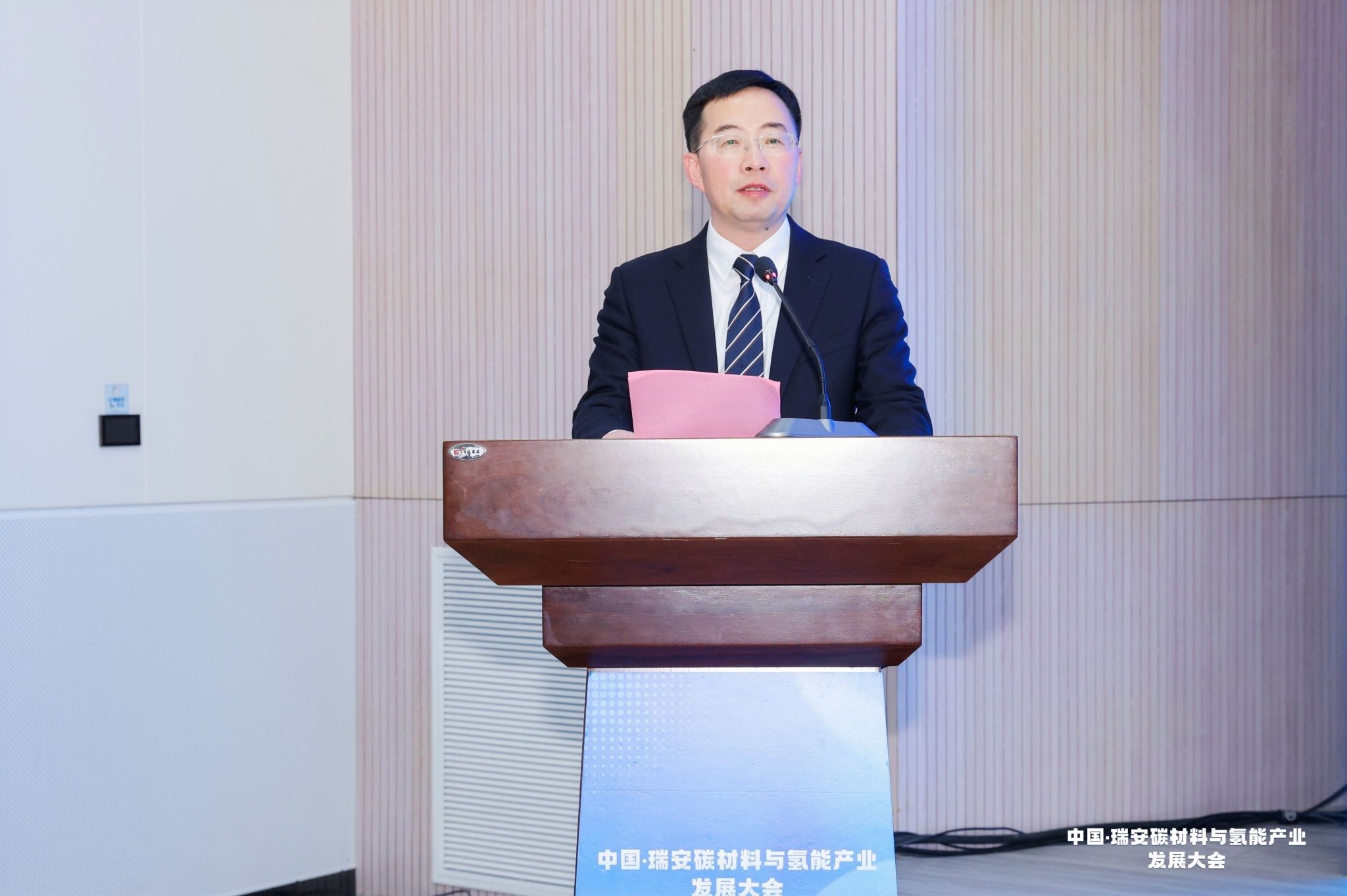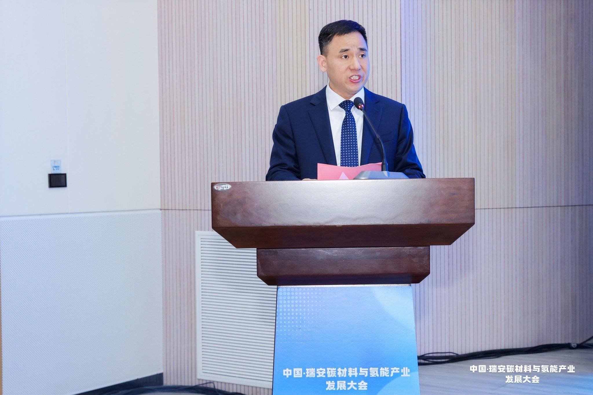 瑞安市委书记李坚致辞。他向与会的嘉宾介绍了瑞安市“人才强市、创新强市”战略的实施成果,并表示碳材料和氢能产业是国家战略新兴产业,瑞安市政府将认真贯彻上级部署,把发展碳氢产业作为培育新质生产力的重要着力点。加速加力抢占新风口,将瑞安碳氢产业打造成新质生产力的示范样本。