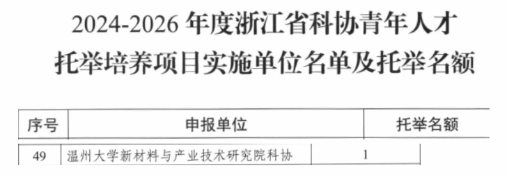 新材料与产业技术研究院成功入选为浙江科协青年人才托举项目实施单位,标志着学院在人才发现、评价、培养等方面取得了显著的成果,也体现了学院在推动青年人才成长和科技创新方面所做出的积极贡献。