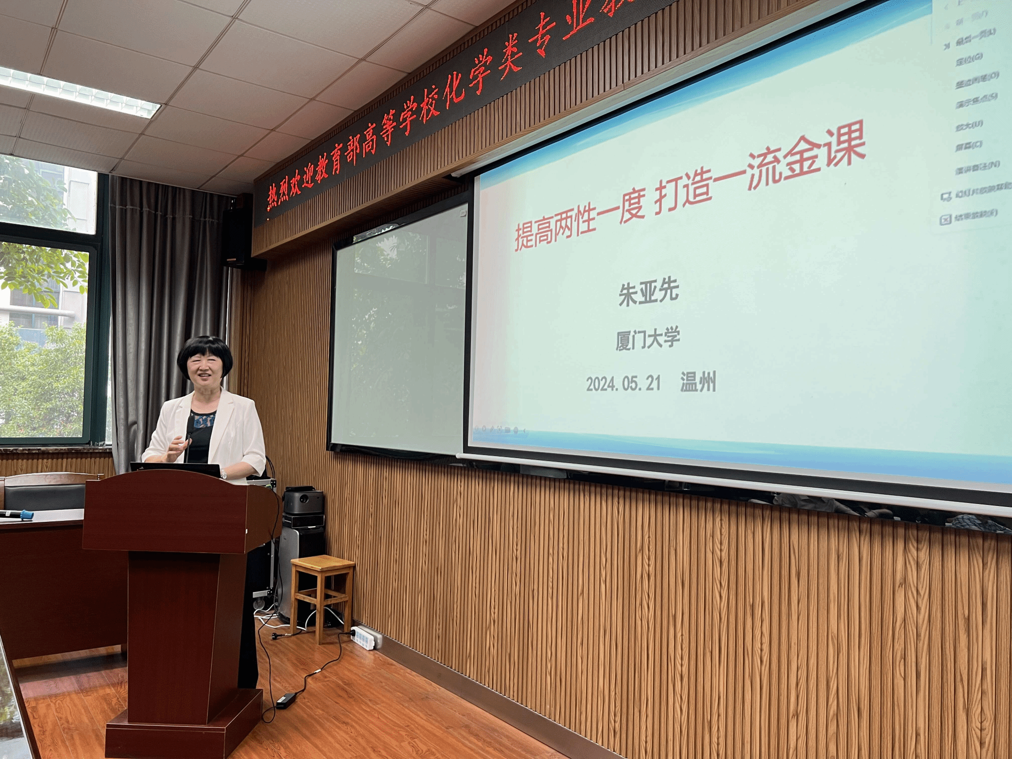 王玉枝教授从课程思政概念的形成、课程思政建设内容、课程思政建设举措等方面分享了她在课程思政教学研究方面的丰富经验。她认为,新时代教师应成为教育家型教师,不仅授之以鱼,而且授之以渔,授之以欲,授之以誉,授之以宇;既精通专业知识,做好“经师”,又涵养德行,成为“人师”。
