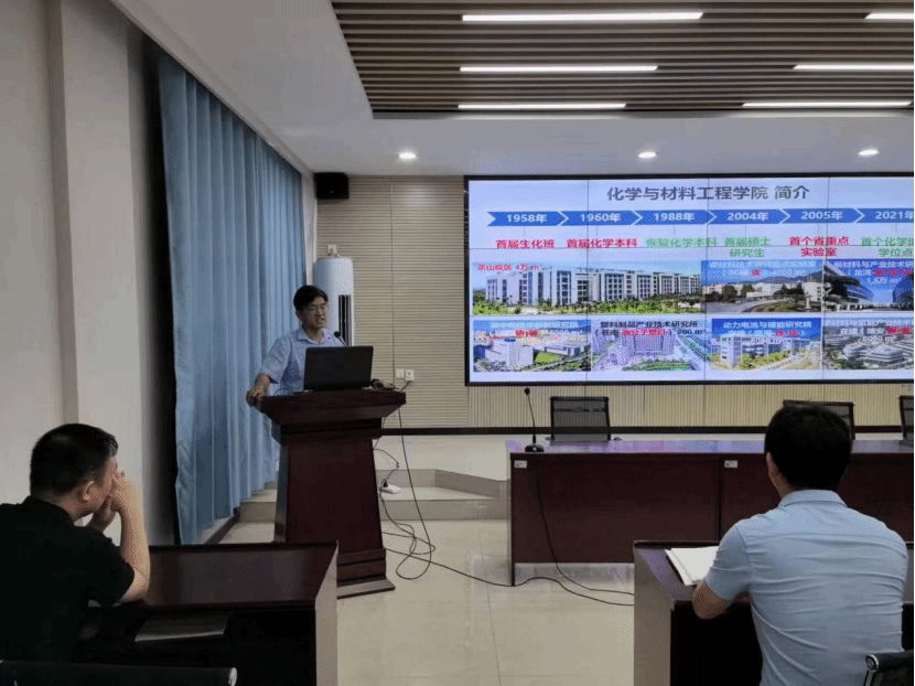 党委书记邹超从学院发展历程、学科布局、科学研究、人才培养等方面介绍了介绍了学院基本情况,以及党建工作特色,期待双方在学科建设、师资队伍、人才培养等方面持续推动交往交融深化合作,搭建名师交流分享平台、共同打造科学研究团队,立足能源和材料学科特色,聚焦国家发展的重大战略和现实难题,贡献温大智慧。