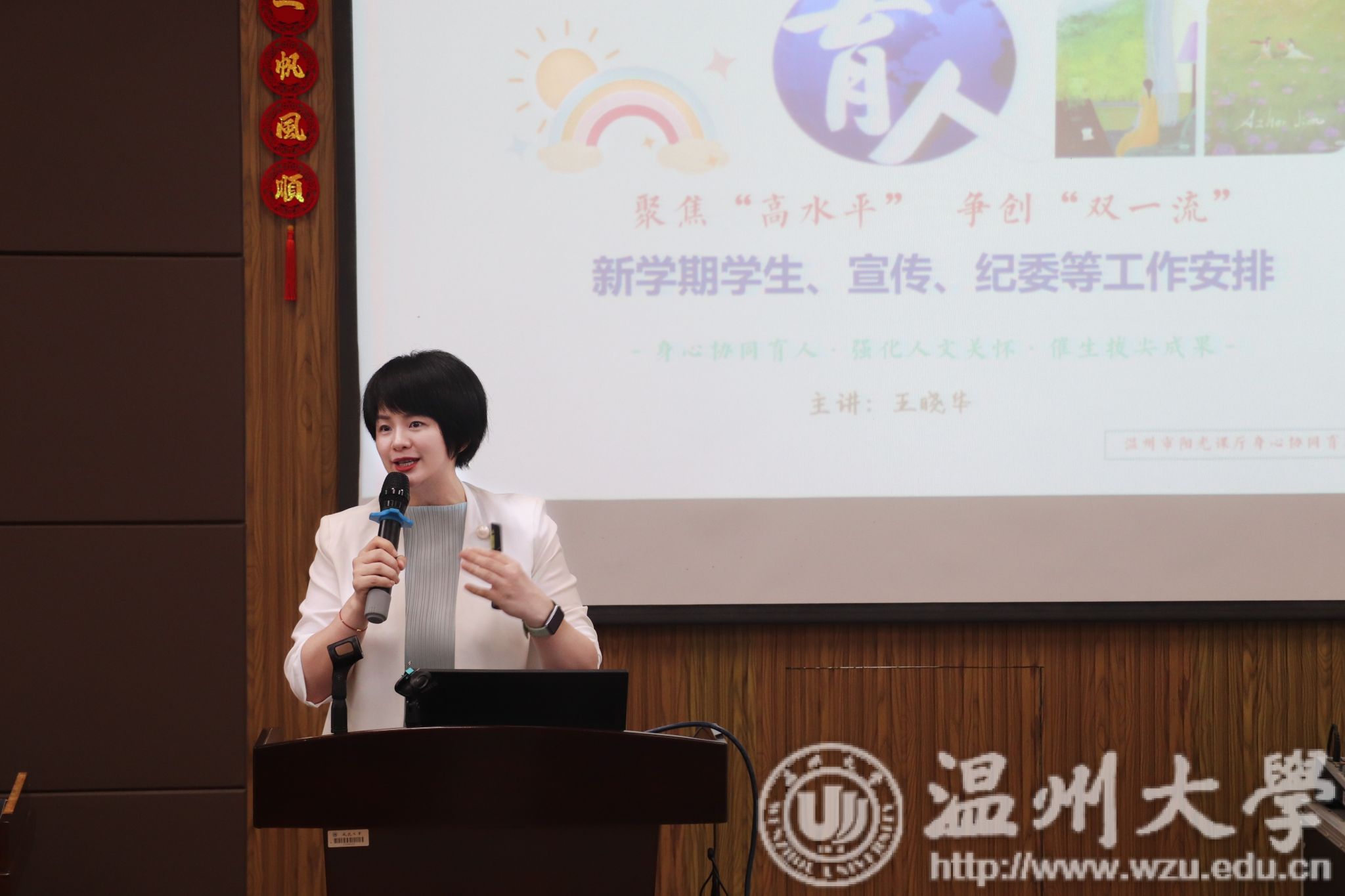 王晓华副书记回顾了暑期招生就业、学科竞赛等工作,进而结合三全育人理念针对学情就前瞻性优化学业管理、保障心理安全、强化导学沟通等学生重点工作予以强调,并对宣传、纪委等工作进行部署。