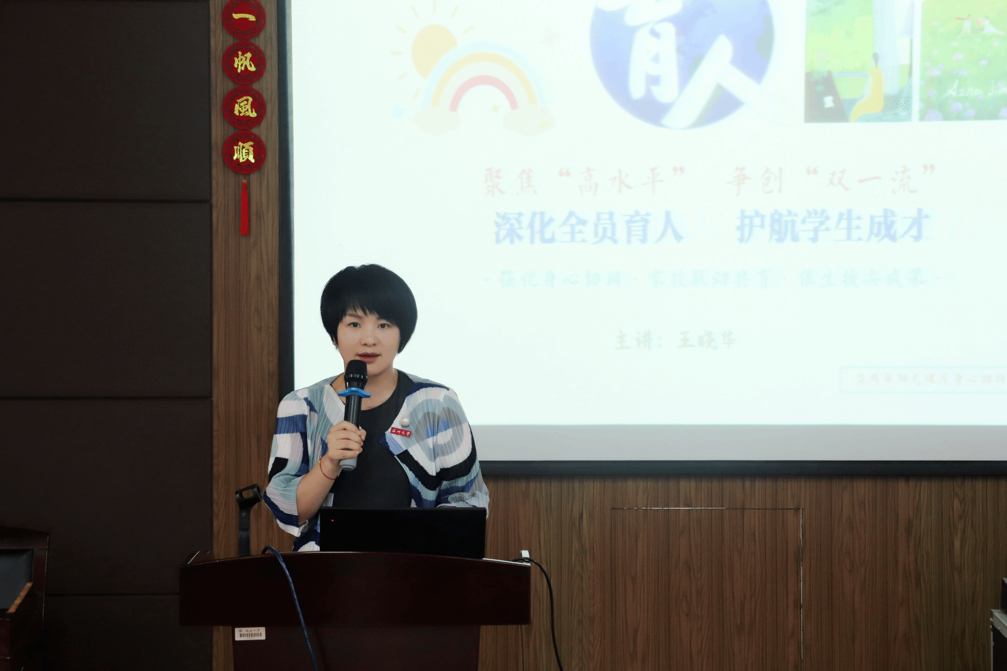 王晓华副书记作学生工作简介。她强调,学院将深入贯彻三全育人理念,不断健全全员育人链条,通过数字社群、小视频、家庭树洞等智能媒介,贯通线上线下资源。并积极以问题为导向,强化发挥家庭的情绪支持、空间覆盖、节点发力等功能,引导家长持续提升科学沟通教育方法,预期为学生升学、就业、备赛备考等重要挑战节点提供必要情感支持和心理托举,以共同助力学生自我突破、全面成长。