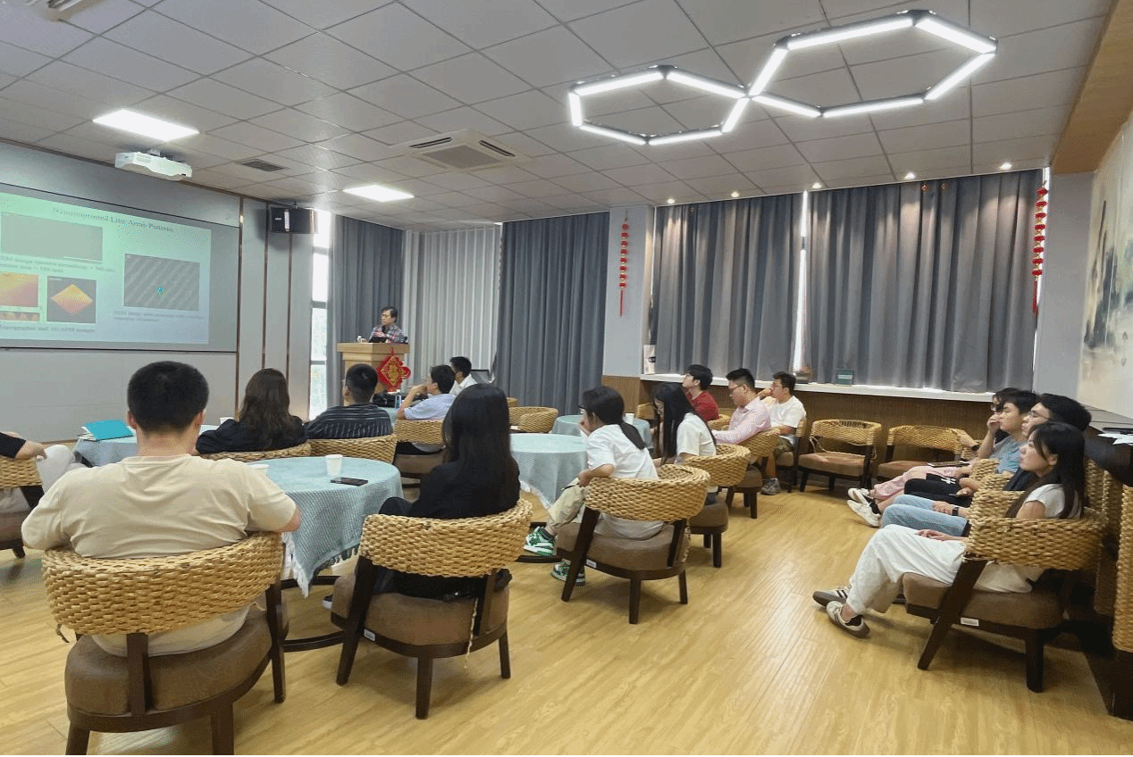 黄维扬教授以“Functional Metal-Based Nanomaterials from Metallopolymers”为题,分享了作为磁性金属合金纳米粒子前体的新型功能金属有机聚合物的开发进展及其光刻图案化研究进展,他表示其有望成为实现高密度磁性数据存储介质的构建块。同时,他揭示了功能性2D金属有机聚合物(纳米片)的自下而上合成策略的奥秘,及其在光电子学、电致变色、电池和催化领域的广泛应用,展现了其在科技进步中的重要作用。黄教授期望通过此次分享,能激发同仁灵感,促进学术交流。分享结束,他详尽解答了师生提问并进一步深化了讨论。